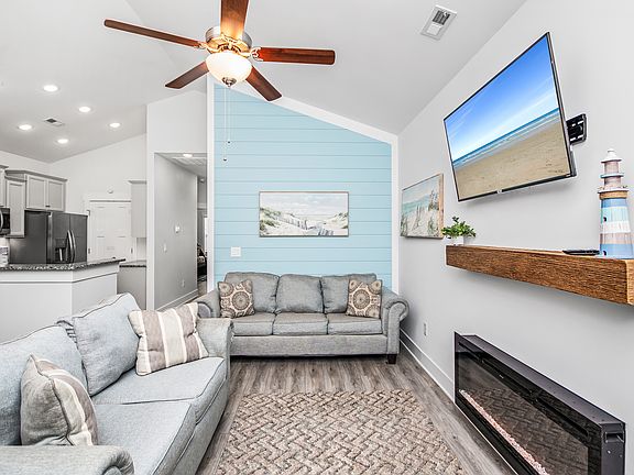 ** SNOWBIRD DISCOUNT - MONTHLY FURNISHED RENTALS ** Seabreeze Haven combines modern beach charm with state-of-the-art amenities, offering a welcoming retreat for families, friends, snowbirds, corporate travelers, and healthcare professionals seeking extended stays! * Central Location * Extended stays available * Situated near hospitals: South Strand Medical Center 4.6mi 13min drive * Tidelands Health Family Medicine 4.3mi 9min drive * Conway Health Plaza 7.5mi 15min drive * Sleeps 8; 3 bedrooms with 2 queen beds, 1 twin-over-full bunk bed, and 1 queen sofa bed in the living room for extra space. * 2 full bathrooms and 1 half bathroom * Private balcony for relaxing ocean breezes * 5-minute walk to the beach * Enjoy complimentary Wi-Fi * Well-equipped kitchen with modern appliances * Well-stocked kitchen * Close to top Myrtle Beach attractions, restaurants, and airport * Variety of beach essentials like towels, chairs, a wagon, cooler, and umbrella * Keep the fun going with games such as cornhole, board games, and cards * In-unit washer and dryer * Parking is available for three cars (one in the garage and two in the driveway). * 7-minute drive to Myrtle Beach International Airport * 6-minute drive to Myrtle Beach's Market Common and some of the best cuisine in South Carolina *12 min to Broadway at the Beach HOUSE DETAILS: BEDROOMS Three bedrooms: The luxurious master bedroom, located on the first floor, features a high-quality queen bed with luxury bedding for ultimate comfort. It includes a spacious walk-in closet, Roku TV, and a convenient kitchenette with a mini-fridge and Keurig coffee maker. The en-suite bathroom offers a relaxing walk-in shower, ensuring a serene experience during your stay. The second bedroom houses 1 queen bed with high-quality sheets and bedding and a Roku TV. And the third bedroom features a cozy twin-over-full bunk bed and a smart TV. BATHROOM Two and a half bathrooms stocked with all the essentials you need for the duration of your stay. KITCHEN Enjoy a well-stocked kitchen with a coffee maker, cookware, dinnerware, stove, dishwasher, knives, microwave, oven, and toaster. LIVING ROOM Cozy Entry: A small living area greets you as you enter. Spacious Main Living Room: The inviting main living area features a cozy electric fireplace, ample seating for the whole group, and a smart TV for entertainment. One of the sofas conveniently converts into a queen-size sleeper, providing extra accommodation for guests. OUTDOOR AREA Step outside and enjoy the beach air! Enjoy the 2nd-floor patio and an outdoor shower! LAUNDRY Full laundry room is located upstairs for convenience. PARKING Parking is available for three cars (one in the garage and two in the driveway). UTILITIES: included are water, gas, electric, and wifi with an allowance of $250/mo. Any usage beyond this limit is the responsibility of the guest to pay. PET-FRIENDLY Up to 2 dogs, 50 lbs and under. Pet fees/deposits apply. No cats or birds are permitted. CLEANING: Complimentary monthly basic linen cleans are part of the rental rate. ONE-TIME MOVE-OUT CLEAN FEE: $300 Non-smoking and non-vaping property. Drug use of any kind is strictly prohibited on the premises. No parties/events allowed. Month to Month lease terms with Temporary Stays allowed Utility cap is $250 (anything exceeding is guests responsibility to pay) Book today and let us take care of you in Myrtle Beach!