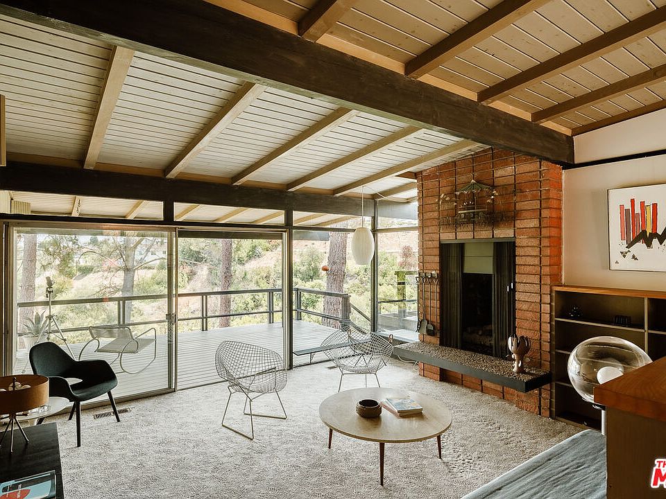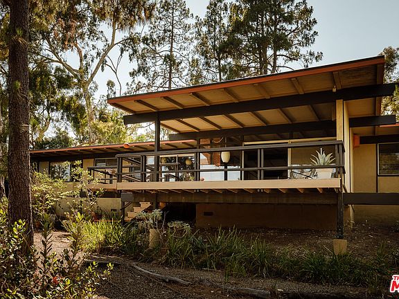 The Mitchell Residence, by architects Buff, Straub & Hensman (1959). Offered for only the second time since built- this distinctive and lovingly cared for home remains miraculously in almost entirely original condition. Situated on more than an acre in Rolling Hills Estates, the house embraces a tranquil and incredibly private setting with expansive floor to ceiling glazing. Exterior and interiors have been blended together seamlessly, with living spaces and adjacent decks placed amidst the towering pines to bring nature into every room. A split level delineates the open plan dining area, family room, and kitchen from the sunken living room and its monumental fireplace with cantilevered mantle. The details are exceptional: signature post and beam vocabulary, translucent glass screening, original light fixtures, and clever and abundant built-in cabinetry. Mature California native plantings populate the surrounding gardens. An idyllic canyon retreat with panoramic city and mountain views, ocean breezes, and a sense of solitude that belies its close proximity to the vibrant beach communities nearby.