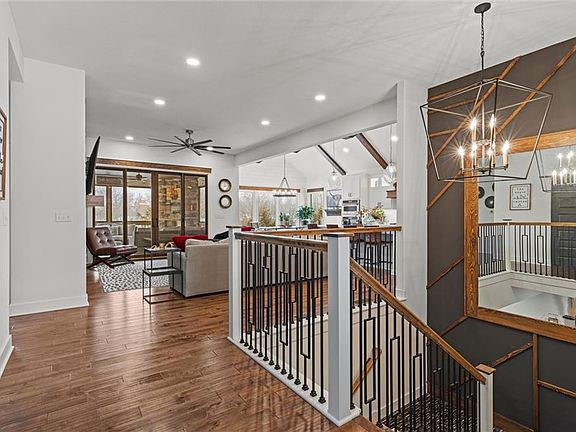 Step inside, you'll be greeted by gleaming wood floors that add warmth & elegance to the living spaces. The open layout creates a seamless flow between the living room, dining area & kitchen, perfect for entertaining. As you walk through you can see the beautiful craftsman detail throughout the entire home. The kitchen features a large island w/ gorgeous granite countertops, vaulted ceiling w/ custom wood beams & walk-in pantry w/ butlers door. Sit at the dinning table enjoying all the nature views of the treed lot & lake. The spacious living room features custom shelving around the gorgeous stoned fireplace. Walk through the large multi glass sliding doors to the screened-in deck, where you can enjoy the serene lake view. Master suite looks out to the lake, enjoy a relaxing bubble bath in the large bath tub or rise off the day in the beautiful tiled walk-in shower. Just off the master bath is a walk-in closet w/ access to the laundry room.