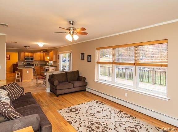 Accepted offer. In the town of Woodbury, Move right into this 4 bed, 3 1/2 bath well maintained colonial. 3214 sqft. of living space on a level corner lot. As you enter into the foyer area you will be greeted with natural light. The formal Dining area and den have gleaming hardwood floors. A Lrg. EIK with new stainless steel appliances. Large living/family room combo with a built in wood pellet stove for those cold/damp winter nights. The convenience of laundry on the first floor and a 1/2 bath. The 2nd floor is fully carpeted. Full finished basement for additional space. Enjoy entertaining on the freshly refinished deck while BBQ grilling with natural gas hook up. Close to Woodbury Common Outlet, Falkirk Golf Course,NYS thruway, NYC bus/train also residents can enjoy the Woodbury park town & recreation which include the town pool, a beautiful/lake walking trails. updates include central air, French drains, driveway resurfaced, hot water heater,playground and ring camera stay.
