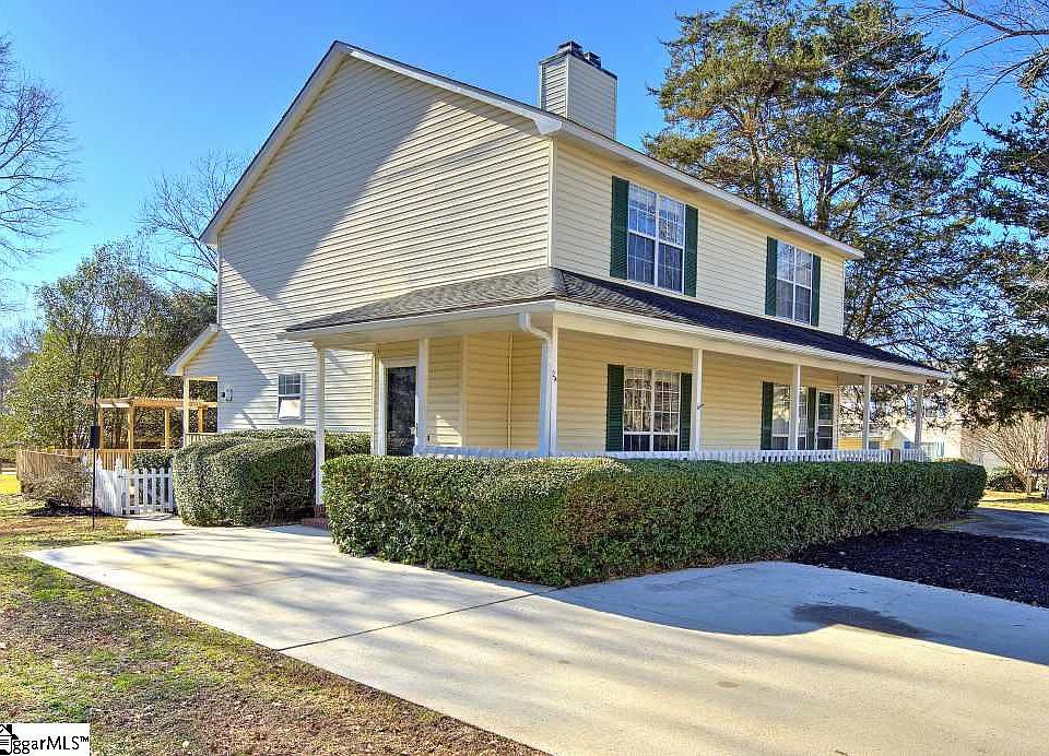 UPDATED FROM TOP TO BOTTOM! When you enter your freshly painted front door and step onto the luxury vinyl plank flooring, you will feel immediately at home! This beautiful town home has been professionally painted with Sherwin Williams Agreeable Gray, and ceilings, walls and trim have all been freshly painted. Beautiful luxury vinyl plank covers the entire first floor. The kitchen cabinets have been freshly painted. New blinds have been hung on all the windows and brand-new doorknobs on all of the doors. There are new light fixtures and ceiling fans in both bedrooms and the Great Room. You will love to walk across the luxurious new carpet in the bedrooms. The entire home has been pressure washed as well as the back yard fence, deck and patio space. You will love entertaining friends in your family room, and the fun can easily be brought outside in the fabulous outdoor living space. The kitchen is efficient for making delicious meals. The laundry closet is nearby for ease and convenience. When you walk up the stairs, you will love the large and bright master bedroom with its new carpet perfect for bare toes!! The shared upstairs bathroom has a luxurious shower with beautiful glass sliding doors and a skylight. The additional bedroom is perfect for guests or a home office. You will love relaxing on the back covered porch overlooking the inviting patio area and deck with pergola. The additional storage closet is a great bonus, as well as the attic storage with pull down stairs. You will also love the location with easy access to shopping and 85 and 385.