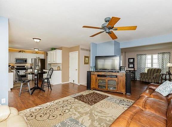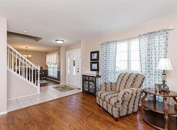 Relax...You are home! Welcome to this immaculate home located on a corner lot in sought after Patriots Landing! This home features an Open Floor plan with Laminate wood flooring through out main. Great room has lots of natural light and flows easily into Updated Kitchen with under and over cabinet lighting, hard surface counter tops, stainless steel appliances, and ceramic tile back splash. Convenient Main Floor Laundry, half bath and OVER-SIZED garage. Bay in Kitchen leads to large deck great for entertaining. Basement is partially finished with LARGE rec room, Sleeping area and Plenty of storage. Upstairs you will find large bedrooms. Master Bedroom suite has vaulted ceilings, walk in closet, Master bathroom with double sinks and separate tub and shower. Large level lot is meticulously maintained. Don't wait to schedule your appointment! This will be gone FAST!