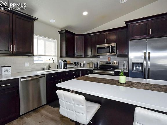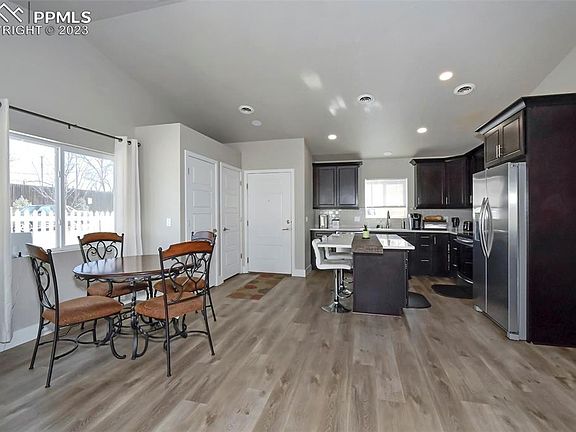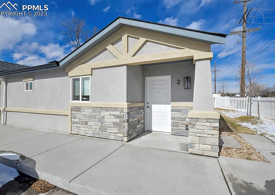Welcome home to this low maintenance, less than 2-year-old, main level living, 2-bedroom, 2-bathroom paired townhome. Beautiful modern esthetic includes luxury plank vinyl flooring, "greige" colored paint throughout, stainless steel appliances, and soft close cabinetry. Well-appointed kitchen with loads of cabinet space opens to the large living/great room with walk out to rear patio/courtyard area. There is also room for a dining area in the great room. Vaulted ceilings in both the kitchen and living/great room allows for a light, bright and airy feel. Large kitchen pantry and a coat closet are also included in the main living space. The wide hallway with LVP leads to the 2 bedrooms and bathrooms, mechanical, linen, and laundry closets. Less than 2-year-old washer and dryer are included. The Primary Bedroom is large with vaulted ceilings, plush carpet, an attached 3/4 bathroom with walk in shower and a walk-in closet. The secondary bedroom has a walk in closet and plush carpet. The second bathroom has a tub/shower combination. All beautiful and on trend finishes. Conveniently located to downtown, shopping, entertainment, UCCS, hospitals, bus line and so much more. Easy access to I-25 too. You don’t want to miss this beautiful and efficient home! Come see it today!
