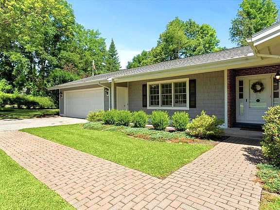 Huge price drop!!  Come fall in love with this one-story Ranch and make it your new home sweet home.  Exterior has a brand new roof (March 2024), vinyl shake siding, weeping mortar brick entryway, and mature landscaping.  Accessible layout, everything on the main floor including laundry room.  Mix of original features (front door, retro half bath with triangle sink, wood-burning brick fireplace, solid wood paneling in the office) + contemporary updates (renovated kitchens and baths, Bamboo hardwood floors).  Kitchen with white beadboard cabinets, Cambria quartz counters, subway tile backsplash, and Stainless Steel appliances.  Host gatherings in the large living and family rooms.  Down the hall are all 3 bedrooms with spacious closets.  One full bathroom has a tiled shower & jetted bathtub, while the primary suite has a 3/4 bath with step-in tiled shower and radiant heat floor.  Cast-iron hot water baseboard radiators keep you warm in the winter... and enjoy cooling Central Air in summer!  New whole house generator was installed 3-4 years ago, plus high-speed internet and cable available.  Town water & sewer, which means you could add more bedrooms if needed.  Unfinished basement has tons of storage.  Attached 2-car garage and paved driveway.  Highly desirable neighborhood, just a stone's throw from the Mt. Anthony Country Club, a public 18-hole golf course and year-round bar & restaurant.  Watch the videos for a first-look guided tour!