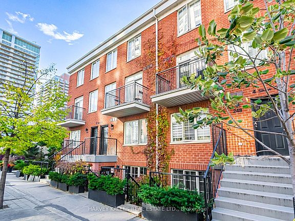 Brand New Beautiful Renovated Kitchen and Bathroom! Freshly painted! A Bright Sun-Filled Two Storey 2 Bedroom Corner Unit Town House In The Heart Of King West Village. Hardwood Throughout, Contemporary Kitchen. Steps To Transit, Metro And Starbucks. Truly A Gem In The City! A Must See! Utilities Included. Includes Parking And Locker.