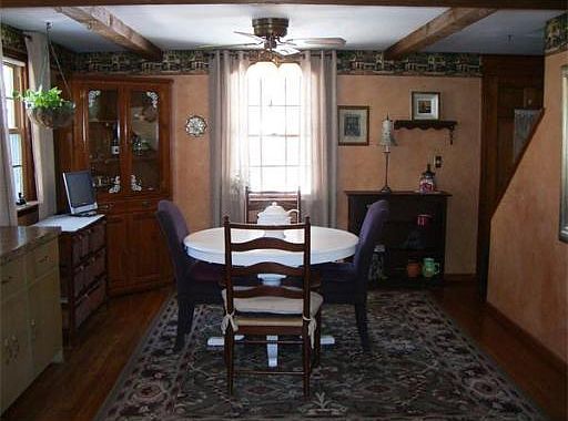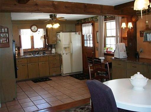 Expanded Cape on cul de sac with hardwood floors, open country kitchen/dining room and first bright and sunny floor family room with cathedral ceilings and FP with bookcases Two decks ... slider to large deck and 2nd one off kitchen overlooking a level wooded lot with shed.. Warm and cozy gas fireplace exposed to LR and FR. Upper level bedrooms with lots of closets/storage. Addition Roof /2 -3 years and main roof 10-12 years old.This home needs updating but can be a diamond in the rough. Shows pride of ownership. Lower level with playroom and 3/4 bath needs repairs/updates. Workshop with benches, laundry and storage. This home is ready for your touches! (Listing 6294199 Confirmed 4/16/2014)