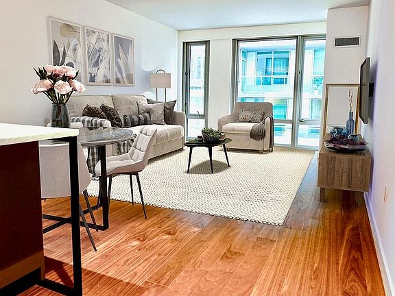 South facing & spacious 845 sq/ft 1 bedroom , 1 bath condo in Park & Shore- a newer full service luxury building in Newport. Exceptional details throughout with open floor plans, floor to ceiling windows, wide-plank hardwood flooring, Chef's kitchen with Bosh SS appliances, beautiful countertops and backsplash, custom center island, with build-in refrigerator and dishwasher. large bedroom w large closet. Designer bathroom with large tiled floor, deep soaking tub, large overhead rain shower, in-unit washer/ dryer. Luxury building offering 24/7 concierge, rooftop with Manhattan view, gym, lounge, pool, golf room, sauna, Jacuzzi, and play area. 7-minutes walk to Hoboken, Newport Path Train, Jersey transit. 1-minute walk to supermarkets. 2-min walk to water front . Next to shopping malls, restaurants.......