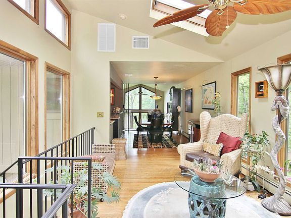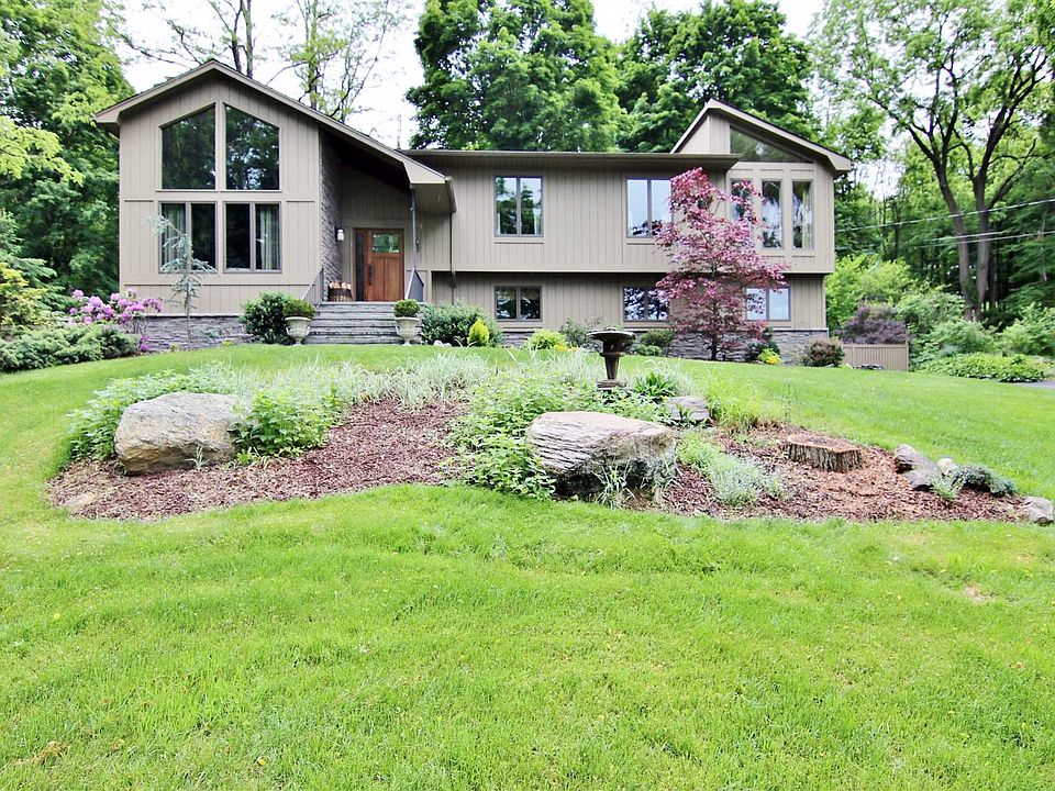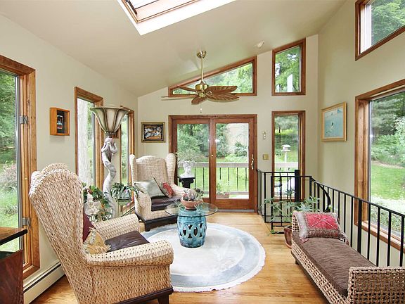 Custom built home A MUST SEE MOVE RIGHT IN !Spacious 3 bedroom 2.5 bath home offers an office, living room w/14-ft ceilings , porcelain wood burning fireplace, stunning architectural wall of windows. Dining room, sunroom -12 ft ceilings , skylights, Juliet balcony, gourmet custom kitchen, solid cherry 42 cabinets , soft close drawers, custom granite c-tops w leather granite breakfast island, double oven w convection option Induction cooktop, pot filler, built in microwave, S/S appliances. This home boasts a family room w copper ceilings, spiral stairway , SGD to 800 sq. ft blue stone and brick patio, designer 1/2 bath w copper sink, Master BDRM suite w sitting area , skylights, walk in cedar closet, master bath w Onyx tiles and glass shower, 2 car garage ,central air, generator hook up , laundry room, basement for storage, gleaming hardwood floors, sundrenched natural light all situated on 1.07 of mature private landscaping COMMUTERS DREAM ! sq. ft NOT included for above ground FAMILY ROOM.