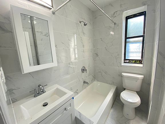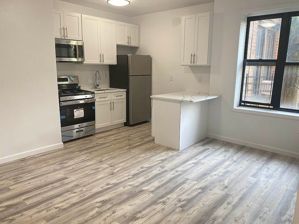 This fully gut renovated and spacious 1-bedroom apartment offers large living area, Huge bedroom that will accommodate a king size bed, eat-in kitchen, lots of natural lights, brand new stainless steel appliances with microwave and spacious his and hers closets. Located on the fourth floor of an elevator building. Close to the 1 and A line and two Laundromats on the same block.