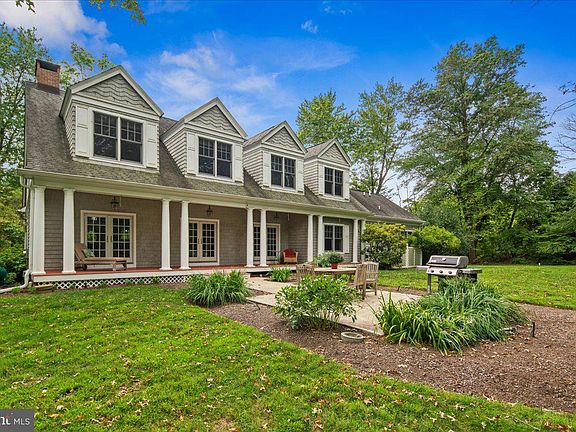 If you crave a great location in Pennington designed by world-famous architect Robert A.M. Stern, featured as Life Magazine's Dream House, and set on almost 2 acres backing to preserved land, look no farther. Soaring and generous spaces, a flexible open plan that brings light and the outdoors in, and practical touches combine to make this stunning home a stylish delight for family, friends and entertaining. Stroll or bike to the heart of town and all three schools in the top-rated Hopewell Valley Regional System or the Pennington School, or visit the nearby trail to appreciate nature and a sense of quiet country. The centerpiece is a spectacular two-story great room, enhanced with a focus on the fireplace and three sets of large French doors that open onto a long pillared mahogany porch looking out onto woods; from the upper windows glimpse sky, treetops and the moon rising. Flowing from this stunning room are the kitchen and breakfast/sitting area, so great for keeping the cook company informally any time of day. The kitchen was completely renovated by the current owners to showcase top appliances (Thermador oven and Miele speed oven), beautiful custom cabinetry, a coffee bar, and new backsplash and lighting, while maintaining the generous pantry conveniently near the entry from the garage and laundry. (Note the extra height of garage doors and ceiling, one of those thoughtful touches.) On the other side of the kitchen is a room, accented with grass wall paper, that can be a formal dining room, a spacious office or studio/project/playroom. Note too the polished oak floors, redone in a darker hue, that unite the entire design, and the custom lighting throughout the main floor. Completing the main floor, the hallway offers an elegantly remodeled powder room and from there the luxurious master bedroom, now so coveted for privacy. It features a curved wall with plantation-shuttered windows, tray ceiling and molding lighting, plus a large walk-in closet and a glamorous bath with separate shower, Jacuzzi and personal cabinet. Upstairs, hardwood floors add elegance to three large bedrooms configured with architectural interest, proving bedrooms don't have to be just boxes. The full-footprint basement has storage galore and extra courses for high ceilings, inviting plans for finishing if or when desired. Minutes to Princeton, I-95 and on to the airports north and south.