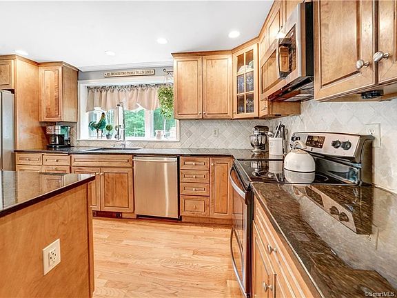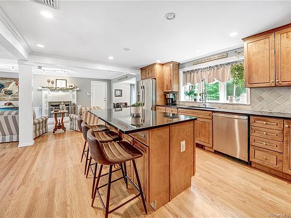 Move-in ready with space for all! Situated in the established Autumn Ridge subdivision, on over two acres, this happy home features crown molding and hardwood throughout the first level open floor plan. Be delighted by the maple kitchen with cabinets to the ceiling, recessed lighting, premium granite counters, and stainless appliances. Entertain at the large island overlooking the dining room, as well as, the living room, with wood burning fireplace. Curl up on the couch and binge your favorite series in the oversized family room. A year-round sunroom serves as a perfect breakfast nook, play area, or office space, and leads to a generous back deck. Upstairs four bedrooms include upper level laundry, updated hall bath, and master en suite. A large finished basement makes a great home gym and game room. CAIR, oil heat, well, septic and transferrable ,energy-saving solar panels. With Chamard Vineyard and Hammonasset Beach State Park right around the corner, this may be the place to soak up the rest of summer! Now showing.