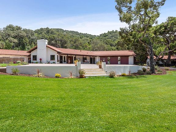 Coming through the gates by the large majestic oaks and meadows you arrive at the end of a private road to 2 Sleepy Hollow. Entering the single level residence you will feel the large and open connected spaces. The renovated chefs kitchen features a walk-in pantry and prep area. The formal living room & dining area boasts a large Carmel stone fireplace and is adjacent to the family room. Throughout, patio doors open to the outdoor living spaces surrounding the home. The residences primary suite has a spa-like bath with two large walk-in closets. Next to the 3-car garage is the separate 800 sq ft one-bedroom apartment with living room that can be a great office or game room. Additionally, there is a well-appointed, detached, 600 sq ft one-bedroom guest house with Carmel stone fireplace. Settle into the evening at the outdoor fireplace, watch the sun set behind the mountains, curl up & gaze at the stars in the sky. Unbelievable this sanctuary is only 25 minutes from Carmel by the Sea.