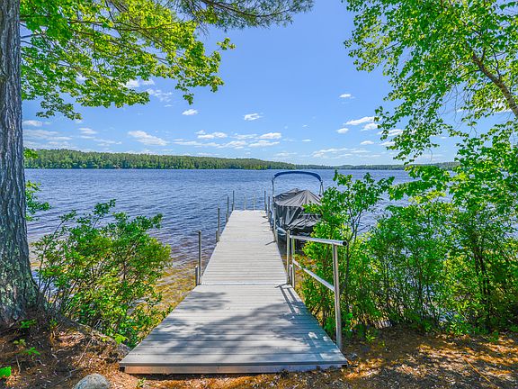 Discover your dream waterfront retreat on Highland Lake, one of the most stunning destinations in the Lakes Region. This custom-designed home offers 168 feet of pristine waterfront and breathtaking views from the widest point of the lake. Enjoy the convenience of single-floor living, with an open-concept layout that seamlessly blends a state-of-the-art kitchen, dining, and living areas. Step outside to a spacious patio just steps from the water, where you'll find a private sandy beach perfect for relaxing or entertaining. This year-round residence is designed for luxury and comfort, complete with a dock for your boating adventures. Many furnishings will convey, making this home move-in ready. Conveniently located just minutes from Pleasant Mountain and downtown Bridgton. This is a rare opportunity to own a truly special piece of waterfront property.
