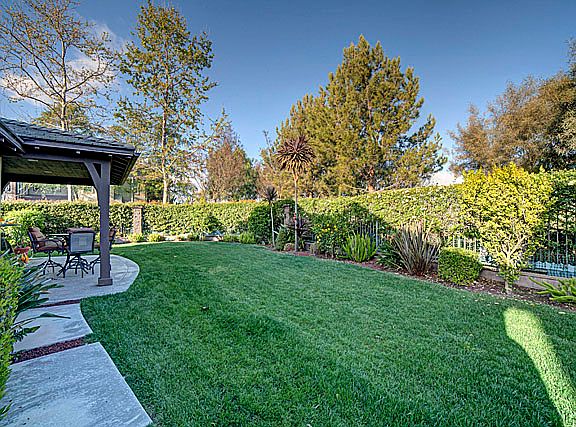 Exceptional Evergreen Ladera home at the end of a cul-de-sac with only 1 neighbor on a prime view lot. This European Cottage features 6 bedrooms, 4 baths, bonus room, 2 plus e-car garage with custom organizers and gorgeous travertine throughout the main living areas. Living room entrance with formal dining room and fireplace. Gourmet kitchen with dining area, walk-in pantry, huge island/breakfast counter with gorgeous blue pearl granite counters, stainless appliances including a built-in refrigerator, five-burner gas stove with hood and warmer. The kitchen and dining area open up to the family room creating an inviting great room. Spacious 1st floor master suite along with two other bedrooms and full bath. The master suite has a walk-in closet with organizers, dual vanities, soaking tub and shower. The 2nd level has a bedroom suite, Jack and Jill bedrooms/bath, huge loft/bonus room with surround sound. Private entertaining backyard with a covered porch, grass area, secluded courtyard, and citrus trees. Other features include solar power to reduce electricity bill, solid wood interior doors, interior sound insulation, central vac, intercom, 1st floor laundry room, ceiling fans, custom shutters throughout, stairway and recessed lighting.
