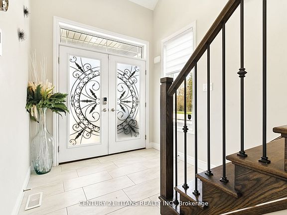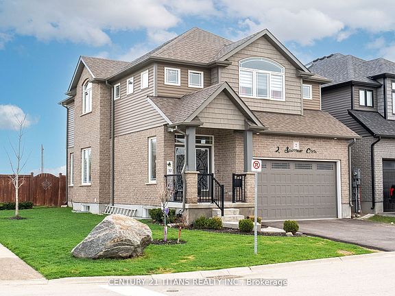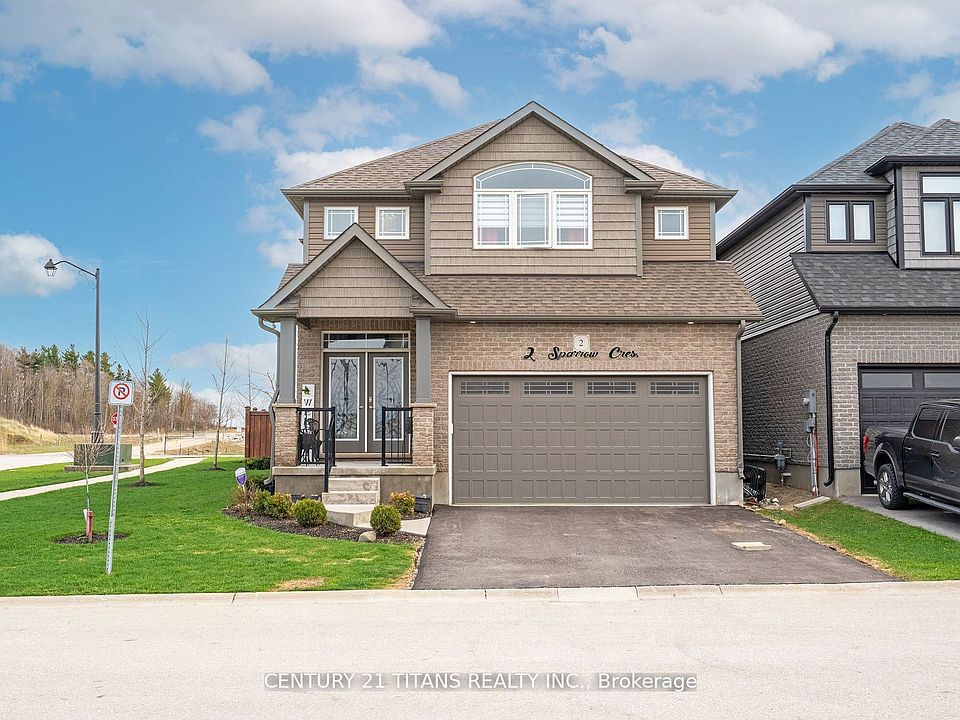 Welcome to #2 Sparrow Crescent! This exquisite residence built by Thomasfield Homes is nestled in the quaint and family-friendly town of Grand Valley, and offers a perfect blend of contemporary design and classic charm. Sitting on a 46 x120 foot corner lot of a quiet and private street, you are surrounded by beautiful green space. This 4 year new, 3-bedroom home has been upgraded throughout and meticulously maintained with every attention to detail. Your double door entry with specially crafted glass and Iron doors lead to an open and airy main floor flowing seamlessly into the grand room, dining room and eat-in kitchen from which you can head out into the fully fenced back yard. You will enjoy the main floor as a perfect space for entertaining, relaxed family time and creating memorable moments. The luxurious finishes here include upgraded laminate flooring throughout, dazzling crystal chandeliers, and custom zebra blinds.The grand kitchen features quartz countertops, glass mosaic backsplash, stainless steel appliances and a centre island with additional storage. A lovely powder room completes the main floor. The upgraded hardwood and rod iron spindle staircase leads to the thoughtfully designed 3 bedroom, 2 bathroom second floor. The oversized primary bedroom includes 2!! walk in closets and a spacious ensuite bathroom with gorgeous mirror and lighting over the double quartz-top vanity and a 2 person shower, providing a luxurious space to start and end your day. The additional bedrooms are equally inviting and spacious with large windows and oversized closets; providing plenty of room for family members or guests. The family bathroom also features a quartz-topped double vanity and a glorious skylight filling the entire bathroom with sunshine. Outside, the backyard invites you to relax in privacy, with no neighbours at the back of the property.