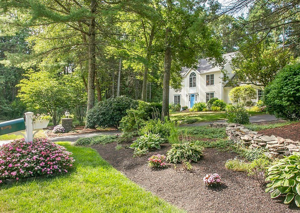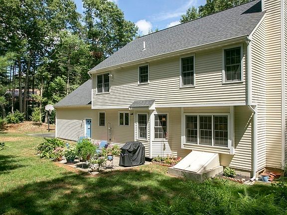 Located in coveted Blueberry Knoll & nestled on nearly an acre is this well-maintained colonial. Upon entering, you are greeted w/a generous tiled front entry. Hardwood flooring flows throughout the first floor. On either side of the entry is the living room/home office w/French doors & dining room w/wainscotting; both have crown molding. The updated kitchen w/white cabinets, center island, ss appliances, quartz countertops & eat-in area flows seamlessly into the fireplaced family room. Perfect spot for family game night! The spacious 1/2 bath rounds out the first floor. Upstairs boasts 3 bedrooms, full bath & large primary bedroom w/updated bath. Room over the garage can be finished to your desire. Full unfinished basement offers plenty of storage. Mature plantings are throughout the property. Adjacent to 43 acres of conservation land, this lovely home offers privacy, relaxation & comfort while still being close to the highway & shopping.