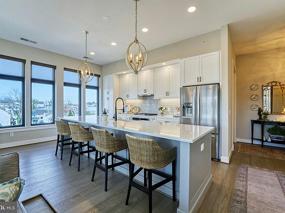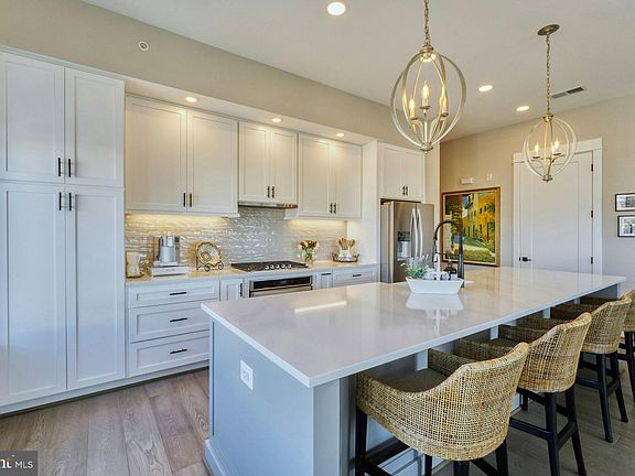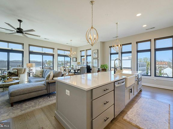 Sophisticated Penthouse Living in the Heart of Historic Downtown Leesburg! Welcome to an extraordinary residence in King Street Station, where timeless charm meets contemporary elegance. This rare luxury penthouse condo has been masterfully enhanced with over $100,000 in bespoke upgrades, offering 1,625 square feet of refined, single-level living in one of Leesburg’s most coveted boutique communities. Every detail has been thoughtfully curated—from the wide-plank engineered hardwood flooring to the designer tilework, custom cabinetry, and sleek Silestone countertops with a coordinating tile backsplash. A stunning fireplace anchors the open-concept living space, where 10-foot ceilings and expansive windows bathe the interiors in natural light. Elevated touches abound: designer wallpaper, Hunter Douglas motorized blinds, custom closets and pantry systems, and a large private roof terrace complete with a motorized retractable awning—ideal for effortless indoor-outdoor entertaining. An Electrolux washer and dryer are discreetly tucked into the unit for convenience, and an assigned oversized garage with custom built-ins is just an elevator ride from your door. Set along the scenic W&OD Trail, King Street Station offers professionally landscaped grounds featuring a community pavilion, terraced lawns, and tranquil garden spaces. From your doorstep, stroll to local favorites like GooseCup Coffee, boutique shops, art galleries, and award-winning dining, all within the vibrant fabric of Historic Downtown Leesburg. With close proximity to commuter routes and Dulles International Airport, this exclusive offering perfectly balances lifestyle, location, and low-maintenance luxury.