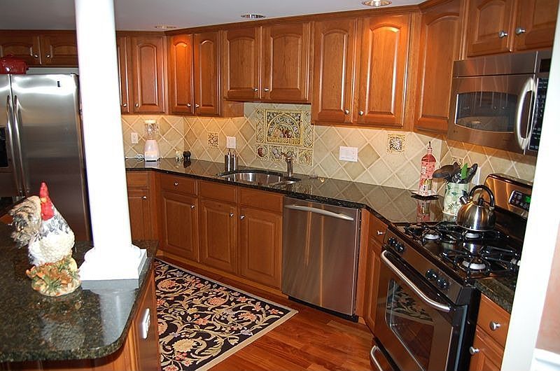 Upgrades beyond listing!!! This 1st floor corner unit is beautifully appointed and customized: custom tile backspash in Kitchen, top of the line SS appliances, pillared island, granite countertops, stone fireplace in LR, built-in cabinet in DR, French doors in Den, Master bath has an oversized shower & Toto toilet, gorgeous hardwood floors, two (2) parking spaces in garage Rent: $2000/month