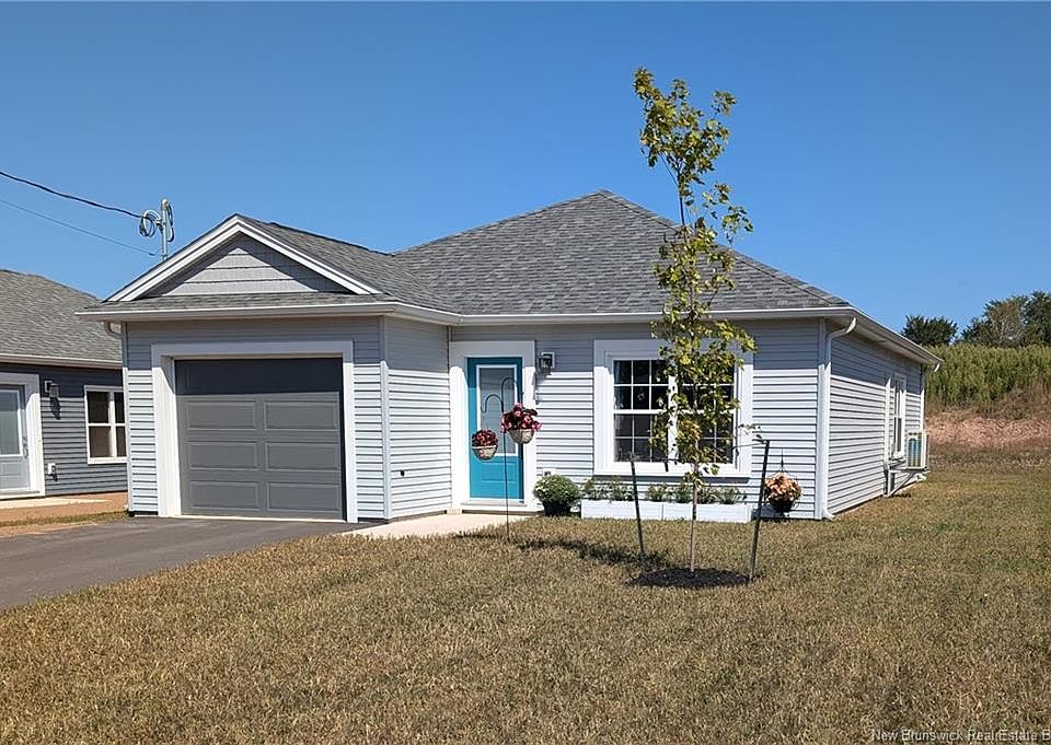 Easy One Level Living in this New Stand alone Home currently under construction. Completion will be in November. This is a true turn key home with everything completed including the lawn & paved driveway and an attached garage. We have the home Heat Pump ready for your Heat Pump. Lot will be seeded and a tree put in the front lawn. This home has a beautiful 75 year plus Maple Tree in the back yard. Off the living room in the back through your patio door we have a 10' x 16' concrete patio to relax on. The kitchen dining and living room all flow together for added comfort.The Master bedroom has has a spacious walk in closet for all your clothing. The Garage is insulated, finished and is heated, its like a finished room the same as the house. There is a nice foyer from the front door which takes you in the House to the 2nd bedroom and from there into kitchen laundry & the main bath which has a 2nd door to the Master bedroom. Home is under construction so if you would like a view we can arrange that. We can also build you a different home in the two current subdivisions we are working on, if you like a bigger home or would like to make changes to a plan, call for your information package today. Home is about a 5 minute walk to downtown Sussex and the walking trail system that takes you to Sussex Corner. The highway is a 2 minute driveway away for quick access to Saint John, Fredericton or Moncton. Call for your private viewing or more information on the Homes we build.