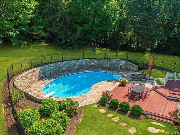 This pristine and impeccably maintained Colonial with a charming front porch sits on 2.26 acres with an in-ground pool on a cul-de-sac in Sandy Hook. Fantastic living space including a spacious family room with a vaulted ceiling and gas log fireplace as well as a more formal living and dining room both with gleaming hardwood floors. The light-filled kitchen has white cabinetry, a pantry, a built-in desk area and a breakfast bar as well as a dining area. Sliders lead to the oversized Trex deck and the fully-fenced and heated in-ground pool with new liner and 400,000 BTU heater. Upstairs, the master suite has a tray ceiling and walk-in closet. Three more bedrooms and a full bath share this level. The finished lower level includes a mudroom at the garage entrance and a large room that can serve as an additional family room, a media room, gym or playroom and offers the convenience of a half bath. This professionally landscaped property with great views is set back from the road and features white privacy fencing, a natural stone retaining wall and patio, and a beautiful 10' diameter white gazebo. Whole house water filtration, whole lawn irrigation system, whole house humidifier, a security system, and an 8.5kW automatic generator are just a few of the features of this home. This immaculate home in a beautiful setting and convenient location is an opportunity not to be missed!