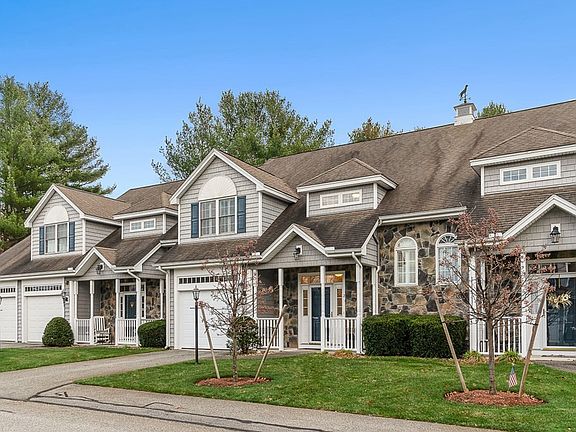Rare offering at Stonebury Crossing! Come see this beautiful, meticulously maintained, move-in ready townhouse in this very desirable 55+ community. Attractive stone front design with front porch/sitting area. Spacious main level features a freshly painted kitchen with white cabinets, quartz countertops and peninsula with built-in bookshelves, sub-zero refrigerator, Advantium microwave/convection oven, Bosch dishwasher, and range. Living room w/elegant gas fireplace and sliders to your own private garden area and patio - perfect for cookouts (grills allowed) and al fresco dining. FIRST FLOOR MASTER BEDROOM with walk-in closet and full bath. Laundry, 1/2 bath and garage access complete the main level. Second level has hardwood throughout and includes a large open loft area, 2nd bedroom, a family room/office (could easily be used as 3rd bedroom), and another full bath. Centrally located. Close to shopping, restaurants, post office, country club. Convenient to 93 and 495.