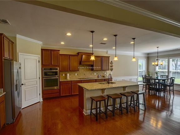 Fabulous Dunwoody Way model with lagoon view! Cook's kitchen! Fabulous layout. Lots of upgrades, wood floors, tile. Open plan. Huge master suite and enormous walk in closet! High ceilings. Crown molding throughout. 5 inch base boards. Over sized 2 car garage with golf cart garage. Shows like new! Compare to new and other neighborhoods. Near Hilton Head beaches, shopping & easy drive to Beaufort & Savannah.