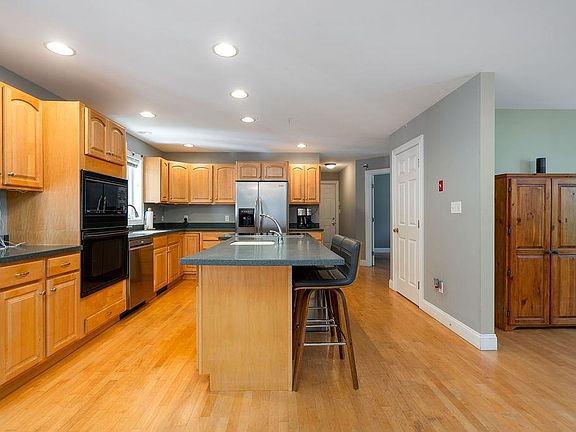 This spacious four-bedroom Colonial offers a flexible floor plan perfect for entertaining. The large kitchen, featuring cooktop on the island, double wall oven, and plenty of workspace flows seamlessly into the great room with vaulted ceilings and a wood fireplace. Your guests will love gathering in this inviting space. Enjoy meals in the eat-in kitchen or the formal dining room, ideal for dinners and catching up on the day. The first floor also includes a home office and a half bath with a laundry room. Relax in the three-season porch overlooking the backyard. Upstairs, the large primary en-suite, three additional bedrooms, and a full bath provide plenty of space for the whole family. The third floor features two versatile flex rooms, perfect for a craft room, playroom, office, or anything you desire. Just add heat to the finished basement and it is ready to be enjoyed as a family room or exercise room. Outdoor entertaining is a breeze with a deck off the three-season porch and a patio for lounging. Conveniently located to commuting routes and a short walk to town, high school, and the library, to enjoy all that Durham has to offer.