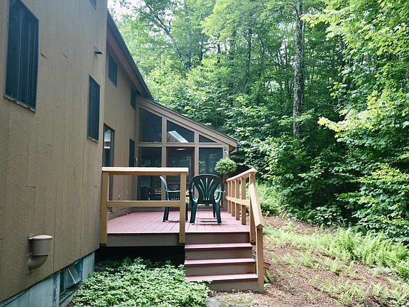 This Eastman home is located within a short walk to the Eastman Lake North Cove beach. As you pull in, the level lot and driveway lead to a detached and oversized 1 car garage, you will also see the 2nd floor balcony and a stone walkway to the front door. Outdoor living is ample with terraced stone walls, a beautiful screened porch and a western facing deck. The current owners "live" in the screened porch. On the inside the focal point is the center brick chimney and fireplace. This home offers one floor living with a kitchen, living room, primary bedroom and laundry all on the main floor. The second floor has a spacious loft, 3/4 bath and bedroom. Multiple skylights let the sunshine in. If you are looking for privacy, you have it here with a 2.3 acre lot. Eastman is a 4 season community that offers something for every one of any age. From championship golf, tennis, a 345 acre lake & 6 beaches, hiking, biking, pickleball, cross country skiing and a full fitness center are just the beginning of the fun you can have!