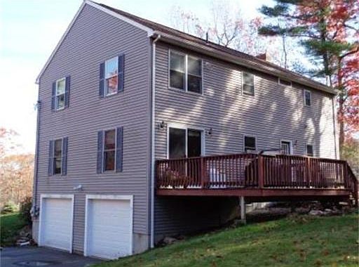 Bright and airy! Seven room colonial sits on a private, wooded lot. Sunny foyer leads to front to back living room with lovely brick fireplace and hardwood floors. Plenty of room for the entire family in the dining room with hardwood flooring. Preparing holiday dinners will be a joy in the spacious kitchen. Large dining area has double sliding doors to an enormous fourteen by sixteen outdoor deck overlooking the wood-lined yard. Ceramic floor half bathroom completes the first floor. Second floor has four over-sized bedrooms and two ceramic floored full baths. Convenience abounds with second floor laundry room. Huge two car garage under and attractive outdoor storage shed. See this magnificent home and you will be amazed will the spacious rooms. USDA Eligible area...