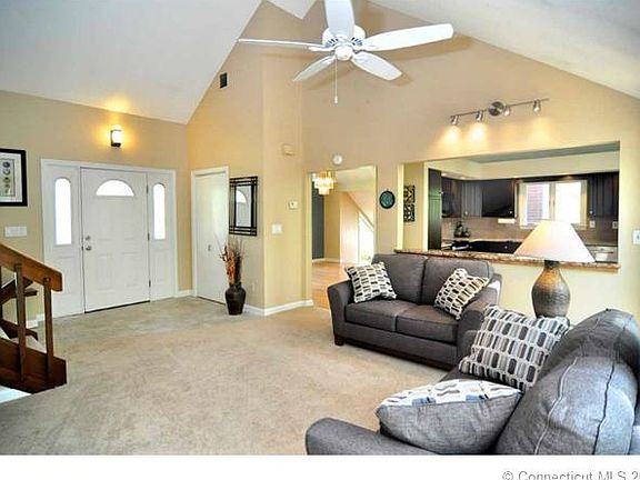 Welcome to Sunny Heights! This lovely, freshly painted 3 Bedroom Contemporary is located on a pretty cul de sac in the heart of Granby! The Kitchen offers granite, stainless appliances, and breakfast bar. The Dining Room is easy for entertaining with its lovely hardwood floors, and then wow your guests in the Family Room with vaulted skylights, fireplace, and slate floor. The carpeted Living Room offers an additional fireplace, vaulted ceiling fan, and two sliders to the deck! For your convenience, a Half Bath is also located on this floor. Upstairs the Master Bedroom with walk-in closet has its own Full Bath with granite vanity. The additional two Bedrooms are carpeted and a Full Bath with granite vanity is on this floor as well. Central Air and generator hook up are available for your comfort and convenience. And there's more --a Bonus Room located on the third floor! It offers a closet, carpet, and individual air conditioning unit space. A pretty level lot that backs to open space makes it a delight to enjoy the beauty around you. Minutes to hiking and bike trails, Bradley International Airport, I91/Hartford/Springfield. This home is the perfect package inside and out-make it yours today!