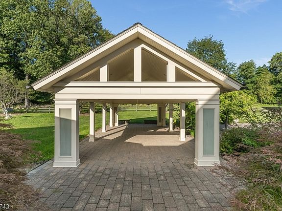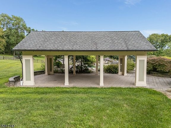 Welcome to your private oasis, perfectly designed for you and your horses! This exquisite 5,134-square-foot custom post-and-beam home combines timeless craftsmanship with modern luxury, offering expansive countryside views and every amenity you could dream of. Experience resort-style living with an in-ground pool, hot tub, stone walls with waterfall feature, paver patios, solar water heater, gas water heater, and spacious entertaining pavilion. The gourmet kitchen is a chef's delight featuring multiple islands, a copper hood, and top-of-the-line appliances including Wolf and Sub-Zero. The primary suite wing boasts two walk-in dressing rooms with custom cabinetry, a spa-inspired bath, steam shower, and a private sitting room that opens to a balcony with breathtaking views. A private office with its own entrance makes working from home effortless. The expansive acreage is complete with a perimeter riding trail, outdoor arena w/flood lights, spacious 7-stall barn, featuring a concrete oversized aisle, wash stall, tack room, bathroom, frost-free hydrants & generous storage. The finished basement offers endless possibilities with a billiard room, gym, recreation area, and powder room. Additional highlights include a whole-house generator, solar panels, copper gutters and leaders, Epi decks, mahogany and white oak floors, and a state-of-the-art Viessmann heating system. This one-of-a-kind estate blends elegance, comfort, and functionality creating the perfect retreat to call home.