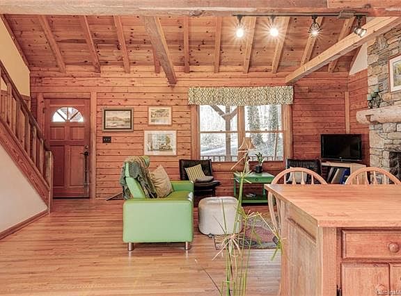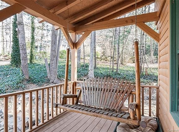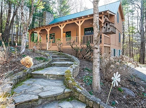 LOG CABIN with charm & character that everyone is looking for! FIVE Bedrooms, 3 full baths, detached 2-story 16x24 outbuilding. Custom built doors, tongue n groove ceilings, hidden pantry and flag stone kitchen floors make this a unique find! Soak your worries away in the hot tub on the deck or sip your favorite beverage and read a book in the swing on the front porch! Upstairs master has it's own sitting area/loft perfect for office or your own private space. In the basement you'll find 2 more bedrooms plus an entertainment/den/playroom for the kids or guests. Beautifully landscaped corner half acre on a quiet street with only 4 homes, situated for as much privacy as possible. All of this and still only 15 minutes to downtown Asheville! What are you waiting for?