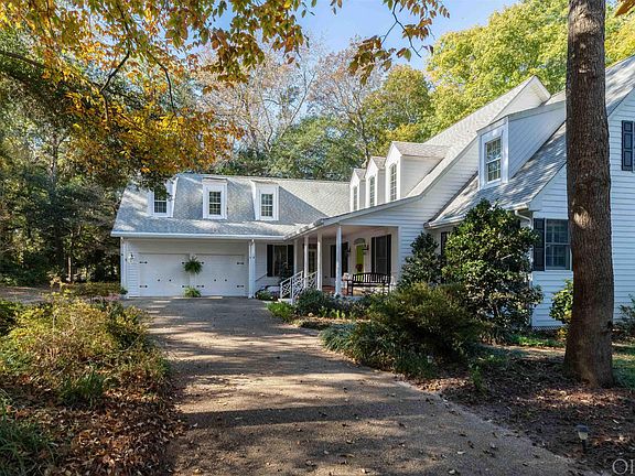 Meticulously maintained custom built home ON CANAL, a revised replica of Southern Living's Crab Tree Cottage! This Move-in ready 5 Bedroom and 3.5 bath canal front home is sure to check all boxes on your ‘MUST HAVE LIST’! First Floor Features: Charming Front Porch: Foyer; Dining Room; Kitchen; Great Room; Office; Powder Room; Laundry Room; Primary Bedroom en-suite – with three closets; whirlpool tub and walk-in shower... Plus Bonus Space currently used as a WOOD SHOP. The spacious Kitchen has breakfast nook; 7’ island with granite countertops; tons of cabinetry; coffee/beverage center/wet-bar; walk-in pantry and more! Canadian Ash hardwood flooring and ceramic tile throughout the first floor. Screened Porch has conical ceiling and overlooks the canal leading to the Currituck Sound. The Second Floor Features: 4 Bedrooms / 2 Full Baths; Loft; Attic; Additional Flex-Spaces. Extra features include: DECK, BULKHEAD; Large TWO CAR Garage; GEOTHERMAL HEAT/AIR System on first level, plus heat pump with 3 zones on 2nd level; 300 gallon propane tank underground; TWO TANKLESS Hot Water Heaters. A whole house exhaust fan; Christmas candle wiring package; central vacuum; attic space; semi-circle driveway; OUTDOOR SHOWER; 5 zone irrigation which runs off a separate private well; garden shed; over 125 Azalea shrubs; manicured lawns; flower beds and natural landscape design. Quiet traffic free area. Southern Shores has excellent school system, offers a series of canals which lead to the Currituck Sound. Join the Voluntary Civic Association and your membership will give you access to numerous private ocean beach access points; 2 Marinas w/boat slips for rent and boat launch areas, playgrounds/fields, tennis, socials and many additional amenities. This home is within .7 miles to beach access, has straight shot to the Southern Shores Shopping Center - one half mile to: Home Depot, Walmart, Grocery Stores, CVS, Restaurants and more! When lifestyle is everything, this is the location you want, SO come fall in love! Click for Matterport Tour: https://my.matterport.com/show/?m=v7mrdjnY3Vx&mls=1