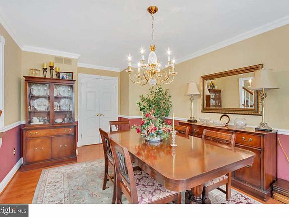 Great home nestled in beautiful Medford Chase. 4 bedroom with full basement 2 1/2 baths. Hardwood floors in dining room, living room and foyer. Lighted crown moulding in the living room, beautiful dining room with crown moulding chair railing and a bay window and french doors leading to kitchen for entertaining. Kitchen offer appliances, Island, Gas stove and ceramic floor. Laundry room, 2 pantry closets. Family room offers wood burning fireplace, skylights and patio door leading to spacious Trex deck. Den/Study/playroom on first floor. Designer moulding in Master bedroom and spacious walk in closet. Ceiling fans in family room and three of the four bedrooms. Windows replaced in 2000. Roof and gutters replaced in 2018. Garage door replaced in 2017. Fenced property that has a swing set that could stay if buyer prefers.