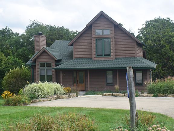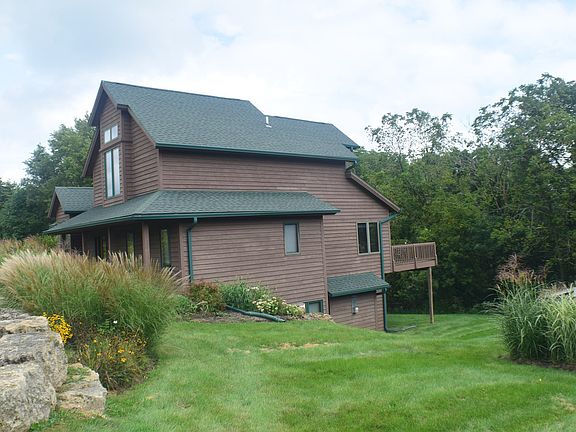 Come check out this Beautiful Contemporary style home. Located 3 hours from Chicago and 15 mins from Galena with Dubuque 30 mins away. Situated on .80 acres with wooded area to the rear of the property. Horse/walking trail is immediately adjacent to the left side of the house when looking from the driveway. Home offers 4 bedrooms, 4 full baths and 2 fireplaces. The main level living room has a floor to ceiling limestone wood burning fireplace, very inviting and warm feeling, the feeling of warmth flows throughout this home. There is a bedroom and full bath on every level, with 2 bedrooms and 2 full baths located on the lower level. Floor coverings consist of oak wood , carpeting, and tile throughout. Attention to detail is shown throughout this home. Kitchen offers an abundance of natural lighting, stainless steel appliances, a special design ceiling, breakfast bar, and dining area. The view out the relaxing porch area, located on main level, gives you a sense of peace and tranquility. The large roomy master bedroom, on upper level, has a walk in closet directly off the master bath. Master bath offers soaking tub and shower with a double sink vanity. In the Lower level you will find a family room, which has a detailed wood paneling ceiling, with a direct vent fireplace and tiled flooring. Shingles replaced in 2009, septic accommodates 4 bedrooms. Exterior of home is scheduled to be stained in the fall of 2016. Driveway has a hard surface, with nicely built retaining walls. Gutters put on house in 2010. High efficiency furnace, new as of 2013. Located in the galena territory. HOA fees apply. The property has green space to the left of the property and boarders the rear, when looking at the property from the front. Arial available. Square footage is approximate.