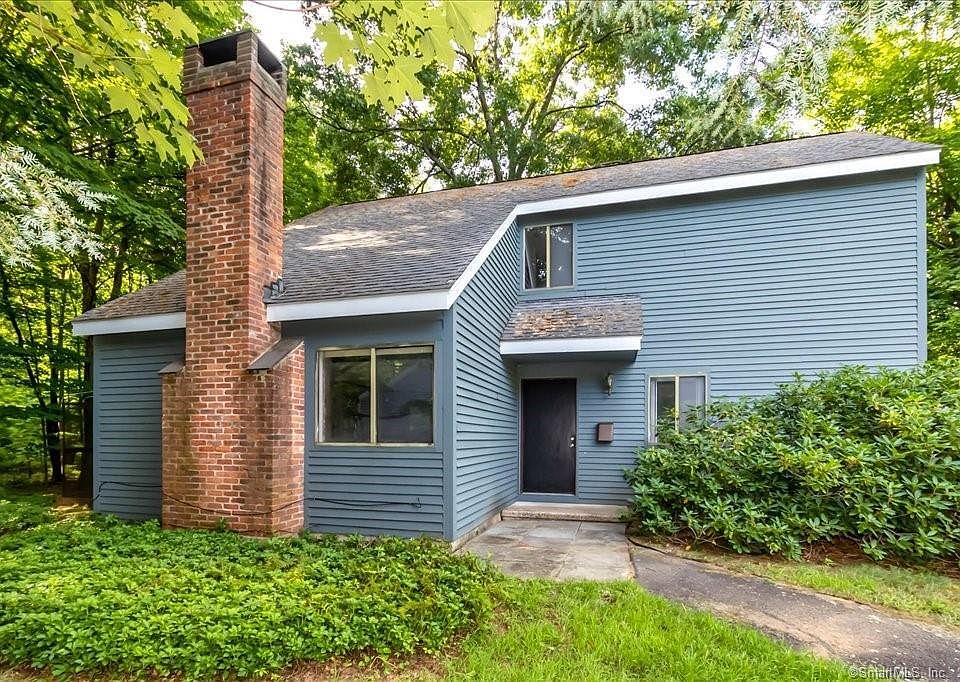 Private contemporary colonial backs to the Farmington River and along the CT Greenway Trail - walk to Simsbury town center! Set in the back of the Hazelmeadow neighborhood on a quiet cul de sac, surrounded by trees with a large screened patio to enjoy the scenery. The home boasts hardwood floors upstairs and down, a separate foyer, living room with vaulted ceiling and fireplace with pellet stove insert open to the kitchen and with sliders to the patio, a large dining room with built-in hutch could also be used as a den or home office, 1/2 bath with laundry (room to make this a full bath), the 2nd floor a large upper hall with room for a work area, a full bath with granite topped vanity, and two large bedrooms both with double closets outfitted with California Closet built-ins. This home has been well maintained mechanically with new hot water heater in 2021, new heat pump and central air in 2019, roof in 2003. There is a 1-car garage with large storage room. Great location, neutral colors, wood floors, ready to move in!!