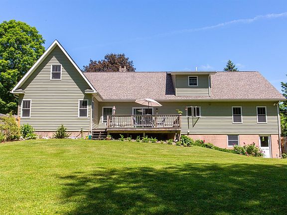 PREPARE TO BE DAZZLED when you enter this spectacular 4 bedroom, 3 and a half bath, Contemporary home built in 2011 with over 6000 square feet of living space sitting on 2 park like acres in a quaint Upstate village. Enjoy the beautiful small town living with walking trails, craft breweries, Awestruck Cider and wonderful restaurants and farmers markets. Close to the Finger Lakes Trail. Every attention to detail is evident in this quality crafted home built by a well known local contractor. The formal entry way with stone front welcomes guests into the large foyer that open to a spacious dining room featuring a wood burning fireplace perfect for entertaining family and friends on those chilly fall nights. French doors open to an amazing gourmet kitchen with center island, stainless steel appliances with double oven, solid Lyptus wood Showplace cabinets and bamboo floating floors throughout the home.Open floor plan with the inviting living room,Walk out to the deck and take in the gorgeous back yard. If you are working from home, the 1st floor bedroom is an ideal office space with lots of natural sunlight. You also have a full bathroom and then down the hall is the oversized en-suite master bedroom with walk in closet, full bathroom with relaxing soaker tub, and double sinks.You'll love the convenience of the first floor laundry room with bathroom. Upstairs you will find two over sized bedrooms, a full bathroom, tons of storage space, large windows, additional office, and a yoga room. And if you are looking for even more space, the inviting entertaining room in the basement is a great place to cozy up by the additional fireplace. Two storage rooms off either side of which one walks out to the beautiful fenced in yard featuring a hot tub to relax in, open and wooded with trails and borders soccer field.In addition to the attached 2 car garage, you have an exceptional detached 2 car garage with workshop, large exercise room or office and separate heat. Many other fine features include 2 -200 Amp services for the 18 volt Step Warm floor radiant heat with individual temperature controls, extremely efficient. Dura-ceramic floors in the bathrooms, Anderson double pane insulated windows complete with Levolor blinds throughout the home, 2 hot water heaters and 30 year roof. This is truly a one of a kind spectacular home that you won't want to miss out on!!!! Less than 3 hours to the city and an easy commute to Binghamton or Oneonta.