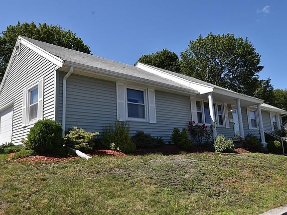 What a wonderful one-level Ranch home this is! Drive into the garage and go right in to the full-service kitchen and from there you will love the fantastic patio off of the kitchen/dining area as well as the rear grounds with some exposed rock formations. Yes, enjoy the outdoors! The spacious living room is complemented by a picture window. Two of the bedrooms are extra large, 19' x 11'. The garage has pull down stairs to access the attic for extra storage. Recent updates: heating and central air system, Rinnai hot water via gas, vinyl siding, electric panel. Easy access to the train to Boston and highways. See it!