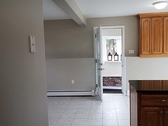 Modern two bedroom apartment in a quiet location. Apartment offers open concept, fully applianced kitchen and living room. Tile flooring through out. Sliders in dining area to a patio. Two good size bedrooms, Laundry hook-ups. Parking on street, but during snow emergency the owners will allow parking in driveway for one car. NO PETS , NO SMOKING.. Good credit and references. Three months rent requited to move in. Heat and Hot water included.