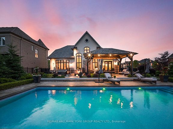 This estate bungaloft offers a blend of refined living and timeless sophistication in a serene atmosphere. At the heart of the home lies a chef-inspired kitchen outfitted with professional appliances, sleek quartz countertops, backsplash, central island, walk-in pantry & servery, ideal for everyday living or upscale entertaining. The soaring two-storey family room is perfect for grand gatherings, offering breathtaking views of the backyard oasis through expansive windows that flood the space with natural light. The main-floor primary suite featuring walk-in closets and a spa-like 5-piece ensuite is designed for pure indulgence. A second bedroom, currently styled as a dressing room is conveniently located beside the primary suite and includes its own 3-piece bath.Throughout the home, warmth and charm abound, elevated by custom drapery, beautiful fireplaces, and two radiant motorized chandeliers that lend a touch of glamour to the living space. Step outside into your own resort-style paradise, complete with a glistening pool, a rejuvenating hot tub, and a cabana featuring a 2-piece bath and storage. Entertain in comfort under the custom gazebo with a TV and ceiling fan, surrounded by manicured gardens, fruit trees, and a thriving vegetable patch all set within beautifully landscaped grounds.The fully finished walk-up basement offers flexibility, whether as a private in-law or nanny suite, guest accommodations, or a teen retreat. It includes a full kitchen, dining area, cozy family room with LED fireplace & feature wall, exercise room, a large bedroom with ensuite, an additional 3-piece guest bath, and a spacious laundry room. With minor modifications, the basement can easily be converted into a 2-3 bedroom suite.For car enthusiasts, the three-car garage is finished to perfection with epoxy floors and is equipped to support one or two car lifts. Nearby schools, charming cafes, conveniences, and golf course.. An exceptional lifestyle opportunity not to be missed.