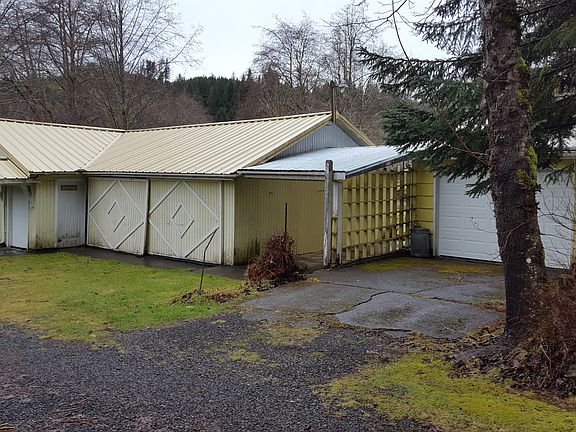 Beautiful location on the Salmon Creek. House needs a lot of updating and repairs. Garage foundation, roof, electrical repairs needed before bank financing can occur. Owners don't want to carry the contact do buyer will need to cash out.