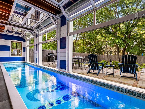- Indoor-Outdoor Pool: A 36x6 bromine lap pool with three garage doors that open to a serene backyard patio. *Please note the pool is not heated*