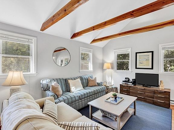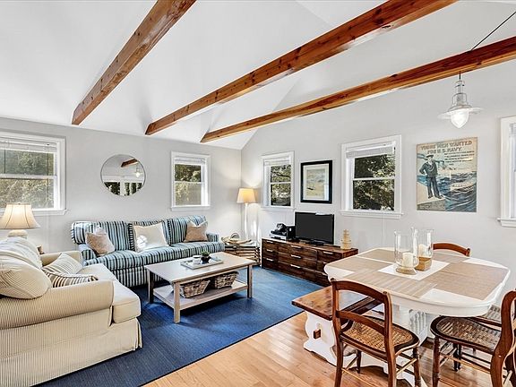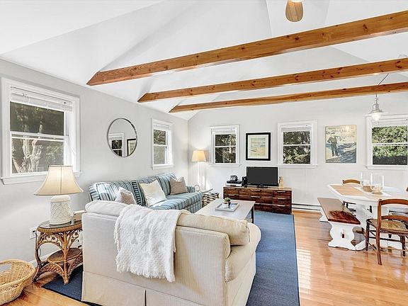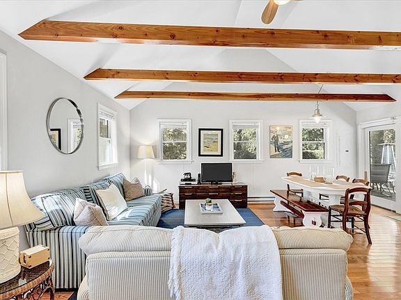 Welcome to this well cared for, and much loved, adorable 3-bedroom 1 bath ranch located minutes from desirable Old Silver Beach in North Falmouth. Step into the light and bright living room where you will find vaulted ceilings and decorative beams. Open concept living, dining and kitchen with butcher block counter tops with a slider to your outdoor living space, featuring a 400 foot deck and outdoor shower. Completely renovated in 2012 with new windows, beautiful hardwood floors and new kitchen and bath. This home is completed with 3 ample sized bedrooms with ceiling fans. Recent upgrades include: Heat Pump (central air and heat) 2023, dishwasher 2024, front door 2023, basement insulation and vapor barrier 2022. Set on a beautiful corner lot with mature trees and plenty of yard space this home is the perfect place to spend time with family and friends.