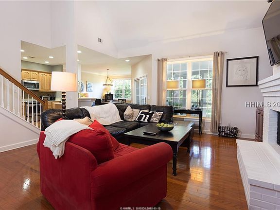 Living the dream! Features 4 Bedrooms or 3 Bedrooms plus a large Bonus Room overlooking big water views to distant fairways. Main floor master suite w/big window doors to the view. Beautiful maple hardwood floors, hickory kitchen cabinetry & a two story great room with brick fireplace. Meticulously maintained! You will love the big screened in porch and sundeck in the private backyard. Also reading loft, laundry room and 2 car garage with golf car storage. Enjoy this wonderful community with 2 championship golf courses, tennis courts, large pool and clubhouse. Located on Hilton Head Island, minutes to schools, shopping, dining and the beach!