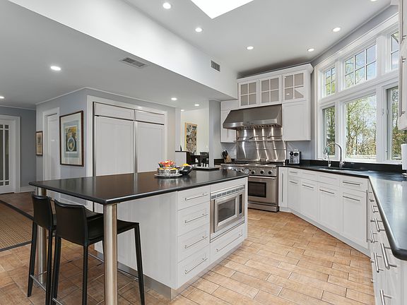 Turnkey living in this spacious home on a centrally located cul de sac close to everything Westport! This meticulously maintained and updated home features a stunning chef's kitchen at its heart, one with high-end appliances including a Thermador range and a 9-foot ceiling with gorgeous transom windows out to the private yard. This contemporary take on the traditional center hall colonial offers an open and flexible floor plan adaptable for all ages and generations. Soaring ceilings throughout create a home filled with light and a happy energy. The generous first floor includes a bedroom with full bath that also can serve as a home office. There is also a legal accessory apartment with kitchenette and full bath on the first floor. Upstairs, the master suite is a sanctuary with its beautiful vaulted ceilings, sumptuous master bath and walk-in closet -- as well as a porch perfect to enjoy a quiet cup of coffee. The bonus room over the 3-car garage offers a great play space as well as tons of storage. Lower level with half bath is the perfect home gym. Upgrades throughout including whole-house generator, brand-new LG washer and dryer, city sewer, new garage doors, CT Basements waterproofing system. All this on a private cul de sac near elementary, middle and high schools and with access to the NYC train shuttle! Room for a pool too!
