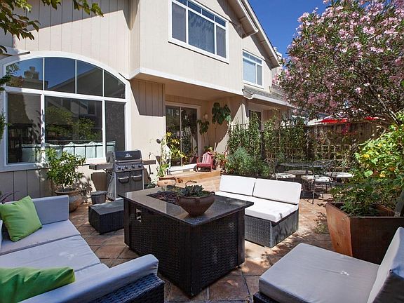 Fall in love- spacious, light corner lot in Baypoint Lagoons. Best floor plan-feels like single family detached, hardwood floors, updated kitchen & lrg brkfast rm/bay window. Vaulted clg & fireplace in Lvg Rm leading to magical garden w/ lush landscaping & custom patio. Bedrooms on upper level...very spacious master ste w/ 2 walk-in closets. 2-car attached garage-plenty of storage. Lovely pool w/Bay views, bay trails & tennis courts. Curb appeal