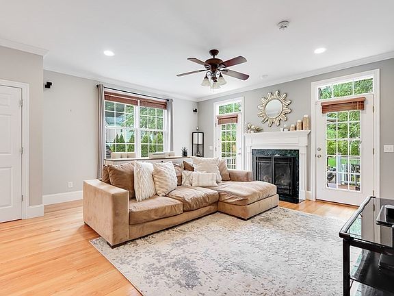 This pristine townhome boasts the space of a single family with the ease of a townhouse. This 3 bedroom, 2.5 bath, 2400+sf young home with all the amenities includes hardwood floors throughout, central air and private yard, which is ideal for larger gatherings, swingset or a space for pets to roam. The kitchen includes a peninsula breakfast bar, cherry cabinets, hardwood floors, gas stove & new refrigerator. Off the kitchen is a large dining room w/handsome wainscoting and crown moldings, and an inviting living room w/ gas fireplace leading to the deck, patio and landscaped yard. Rounding out the first floor is a powder room, ample coat closets and connected garage. Second floor has 3 spacious bedrooms, including a primary suite with walk-in closet, bathroom w/jacuzzi tub & double sinks and a convenient laundry room. The lower level has a sizable family room with w/ handsome built-in cabinet and recessed lighting. Ample storage room w/bulkhead. Easy access to new Rail Trail!