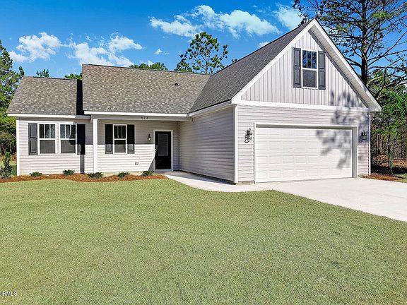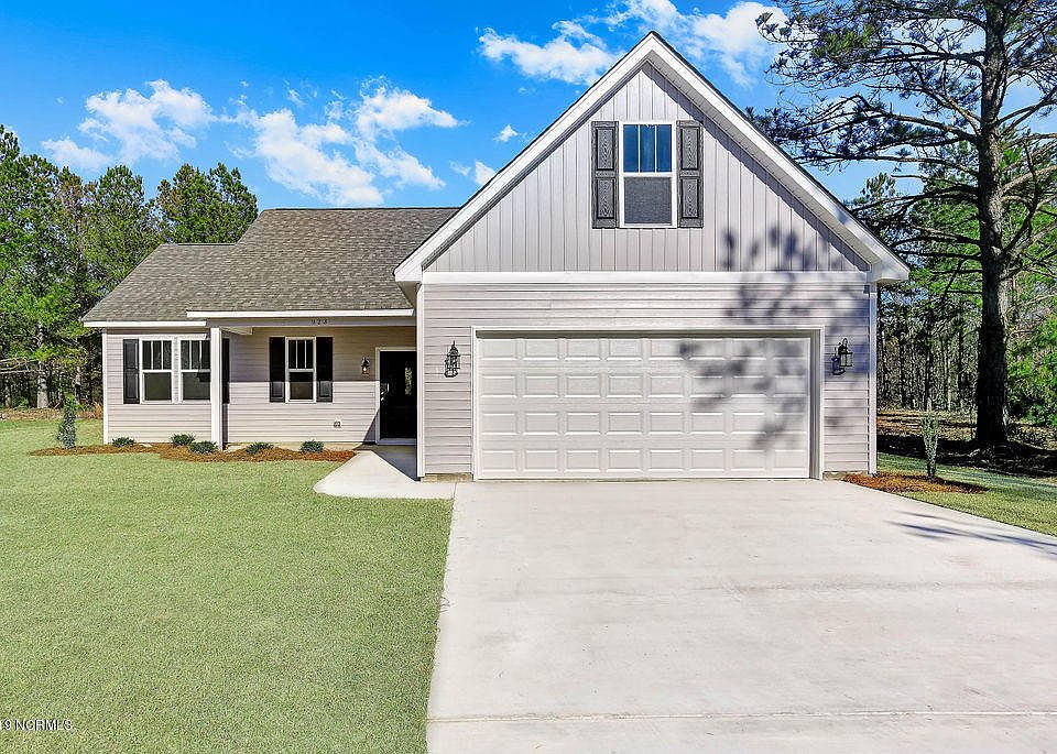 Large .84 acre new construction ranch style home. The Sterling features 1572 heated sq ft, 3 bedrooms, 2 full bathrooms and bonus room over the 2 car garage. Open floor plan includes foyer, kitchen island, vaulted great room and a split floor plan with covered front & back porches. Priced to sell, this new construction home has NO HOA and offers a wooded home site with large trees and is located on a cul-de-sac steet only 12 minutes to Topsail Island and Surf City beaches. Invest today before prices rise, call listing firm for details. Easy to show. This home will be completed the first week of May.