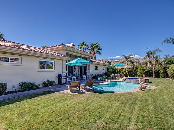 This one shows like a model! High ceilings, open floor plan, three master suites plus a den, a private pool and spa with misting system, great mountain views to the west and located within minutes of restaurants, retailers and multiple golf courses! Living room has high ceilings, three clerestory windows, and a sliding glass door that opens to the backyard. The built-in speakers, fireplace and direct connection to the dining room and open kitchen are ideal for entertaining. Kitchen has stainless appliances, views, casual dining and direct access to the three car garage. The adjacent family room can be enclosed to become a fourth bedroom. Master suite has high ceilings, views, fireplace, access to the private pool/spa plus a retreat area which opens to a south-facing private patio, a walk-in closet plus a private bath with dual sinks, walk-in shower and separate jetted tub. Junior Ensuite Two also offers high ceilings, views, access to the pool/spa, walk-in closet and a private bath with dual sinks and a walk-in shower. South-facing Junior Ensuite Three offers views to the south and west plus a private bath. Additional powder bath plus inside laundry room with sink.