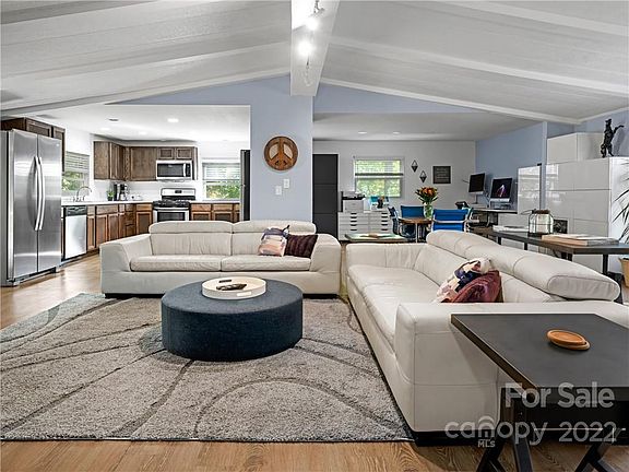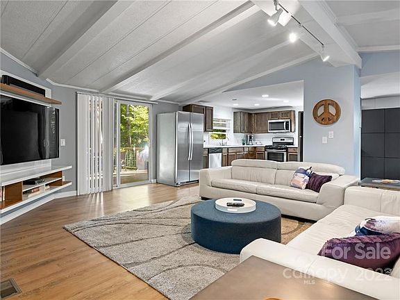 MOUNTAIN MODERN Single Story, Open floor plan. Nestled on a corner lot on .32 acres. This is a must see home with a lot to offer. Landscaped yard with picturesque trees in the desirable quiet community of Sunset Ridge South. Great gathering Kitchen with lots of countertop space and storage. Easily accommodates home office with mountain views. Expansive Master Bedroom Suite with Bath. Perfect for a primary residence or vacation rental. Fenced large patio deck for relaxing and your pets. Just minutes from everyday conveniences, shopping, grocery, and more. Just 20 minutes to downtown Asheville, and 10 minutes to the Ashville airport. Basement storage could be built out into a small workshop.